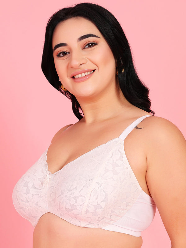 Curvy Love Pack of 2 Plus Size Soft Lace Full Coverage Underwire White & Peach Bra