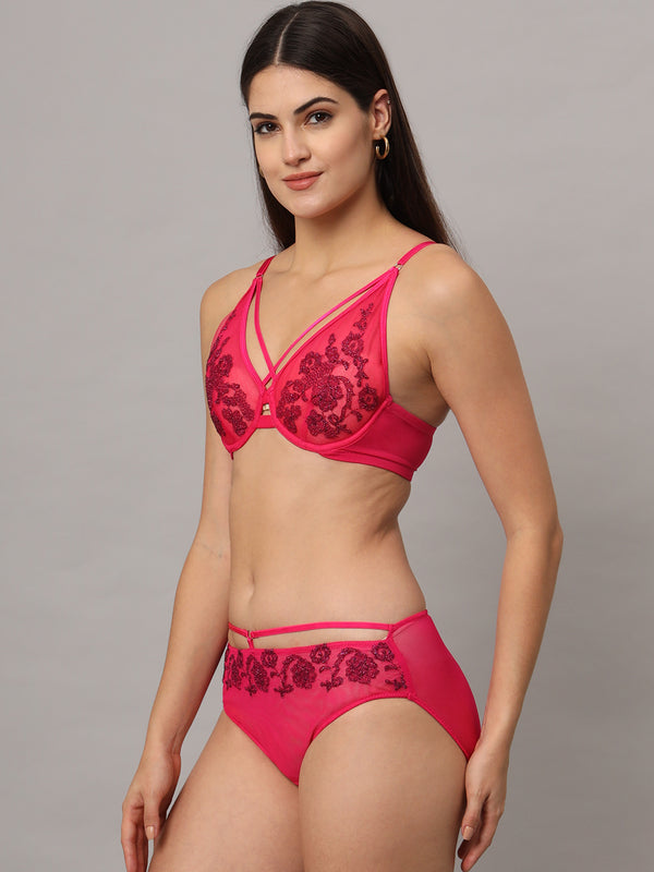 Da Intimo Pink Underwire Embroidered Bridal Lingerie Set