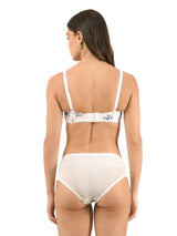 This beautifully designed lingerie set DI-001-WHITE, crafted from breathable cotton that feels soft on sensitive skin and ideal for daily wear. Featuring adjustable straps and a hook & eye closure for a secure, customized fit, this set combines functionality with style through its cut & sew design that enhances shaping and durability. The underwired, lightly padded cups provide superior lift and modest coverage, while the full-coverage fit ensures confidence and comfort. Finished with a playful printed design and mid-rise, mid-waist bottoms, this set offers all-day breathability and ease of movement for effortless wear.